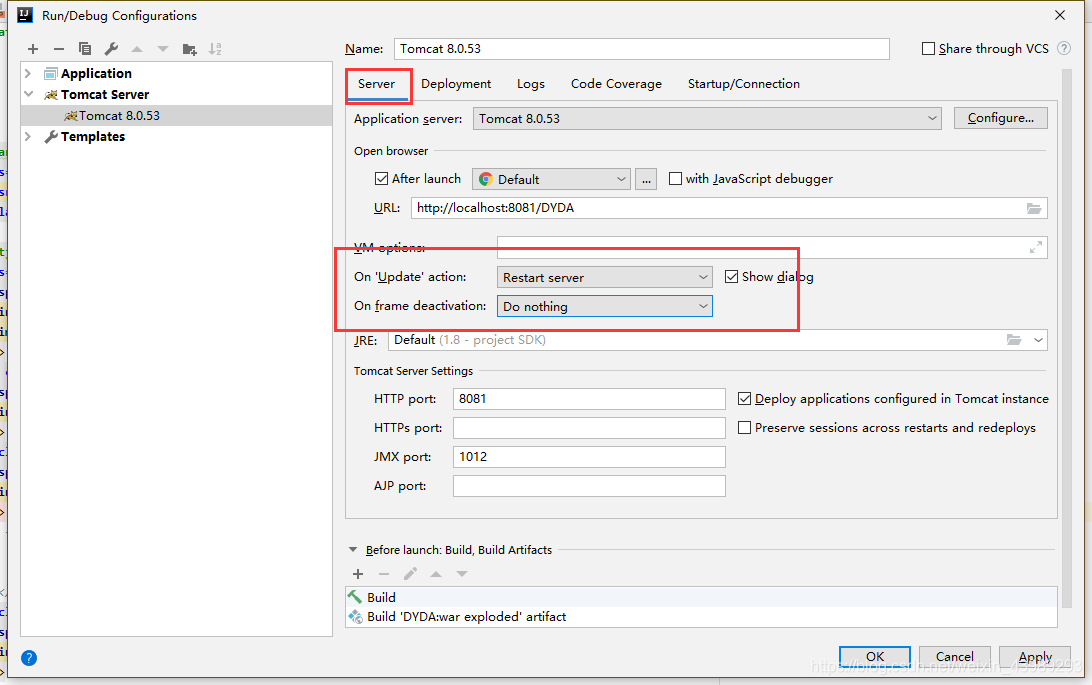 1.2如果你sever 选项卡下没有On frame deactivation,那么就需要配置 Deployment 选项