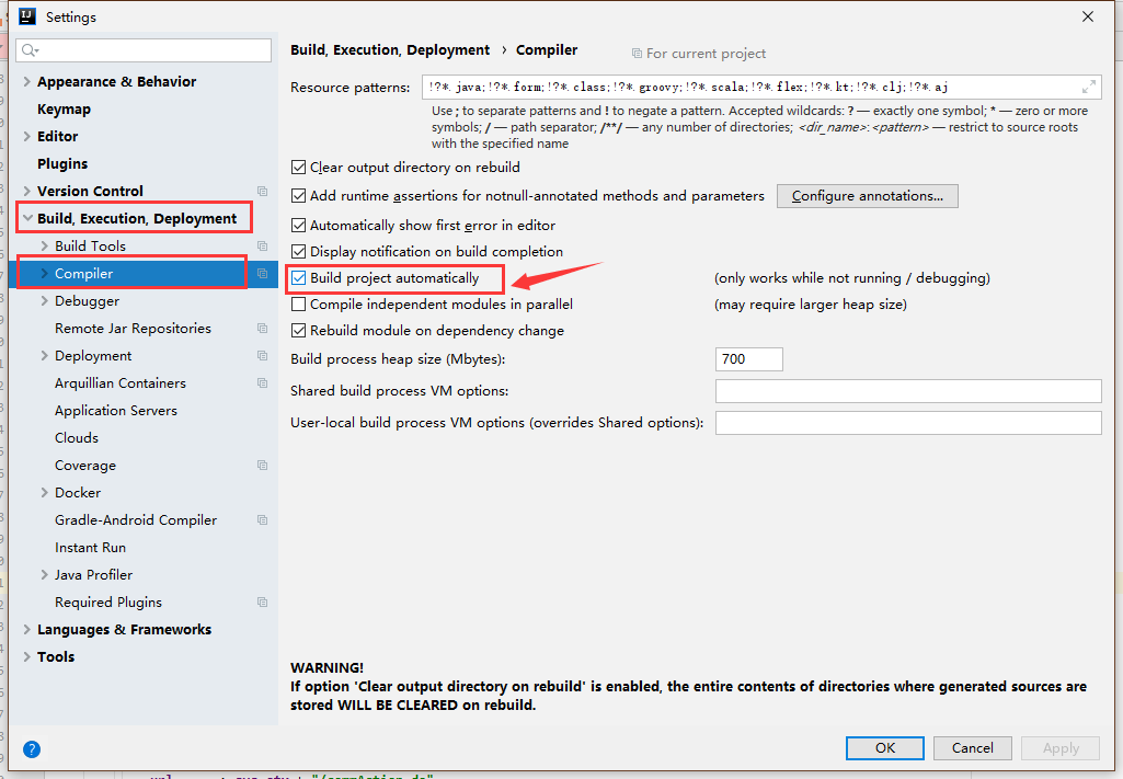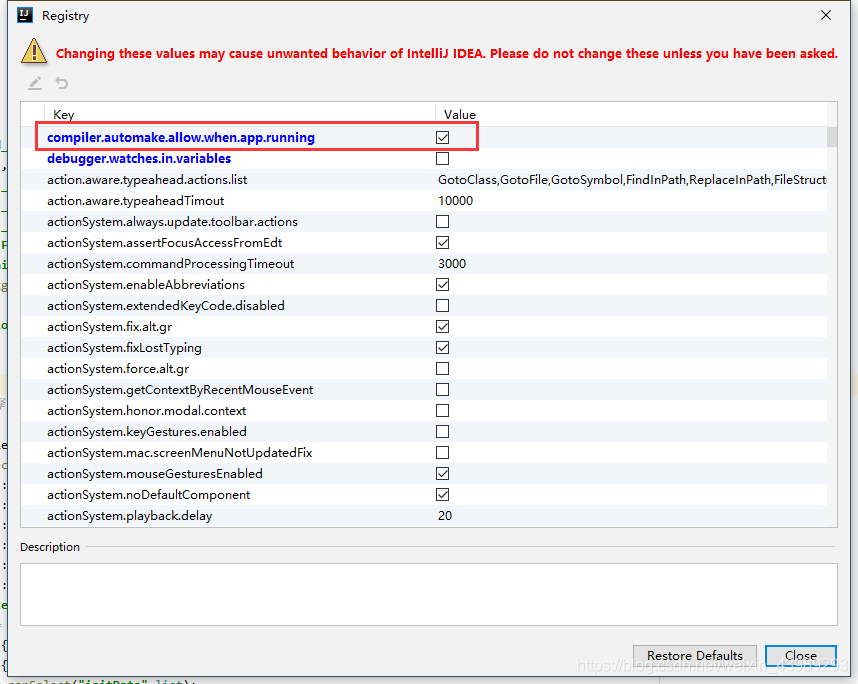 找到 compiler.automake.allow.when.app.running 勾上,然后关闭就可以了