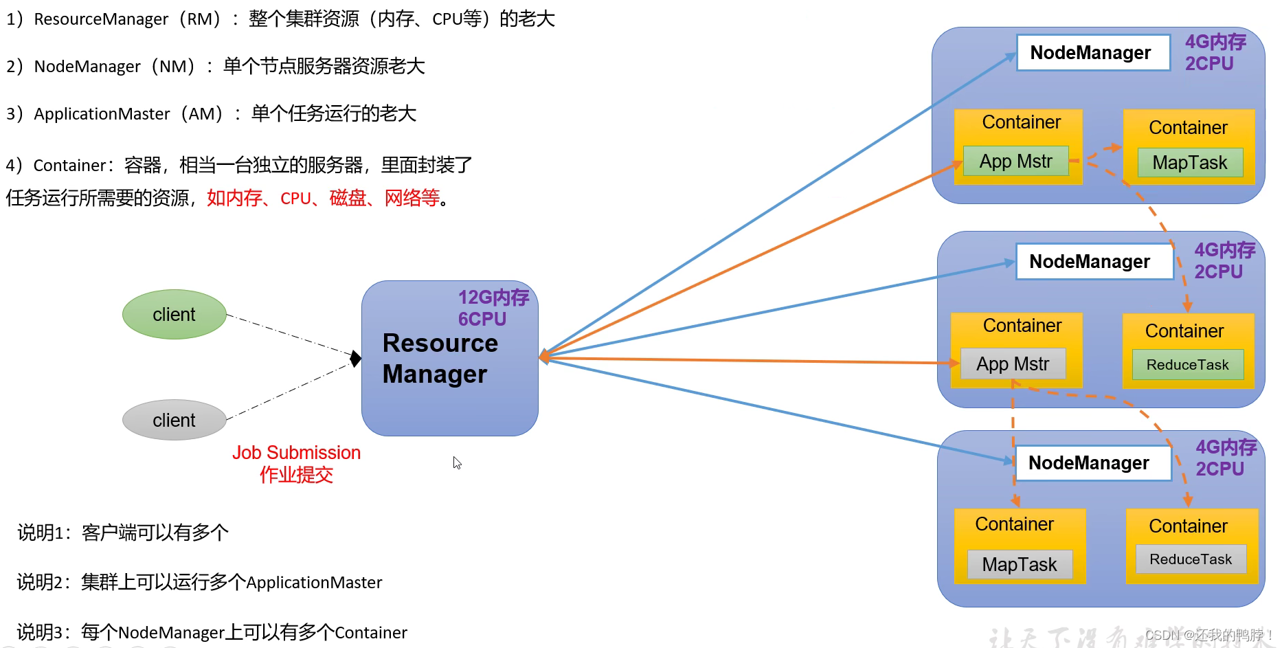 资源管理器,=【RM】Resource Manager(整个集群的资源管理)+【NM】NodeManager(单节点资源管理)