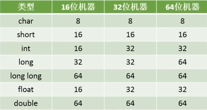 各类型数据的位数: