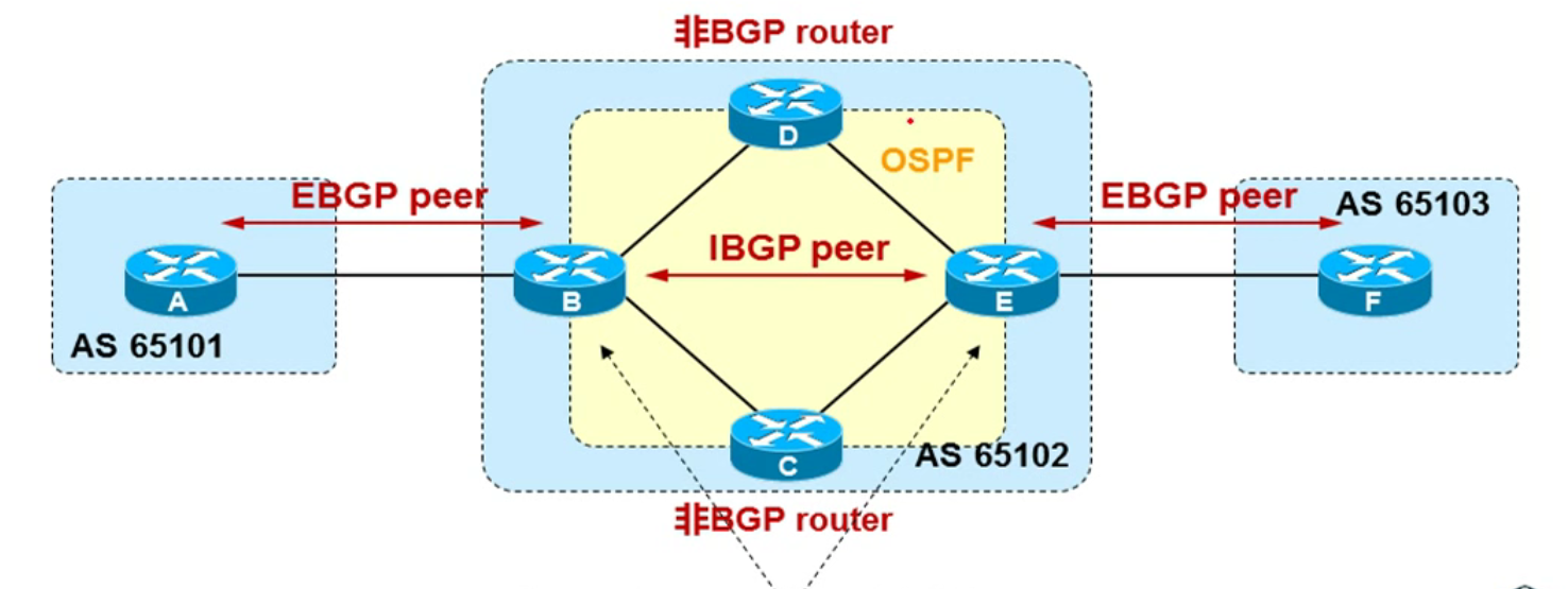 - BGP Speaker 从 EBGP 获得的路由会向他所有的 BGP peer 通告 包括 EBGP 和 IBGP
