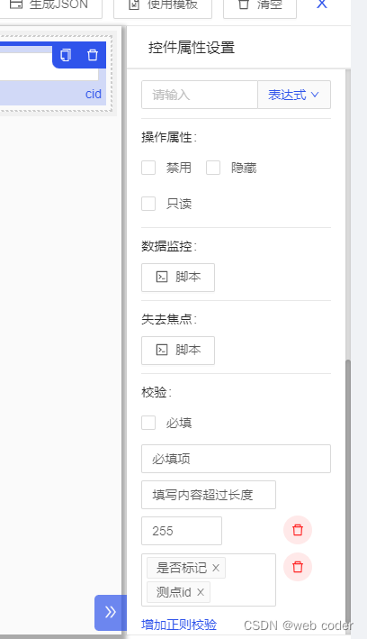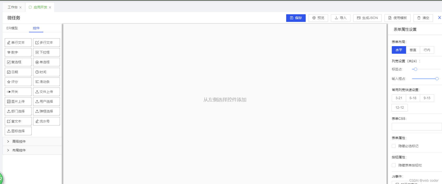 可以使用模板进行初始化设置,然后根据业务需要设置控件显示形式并关联er模型字段