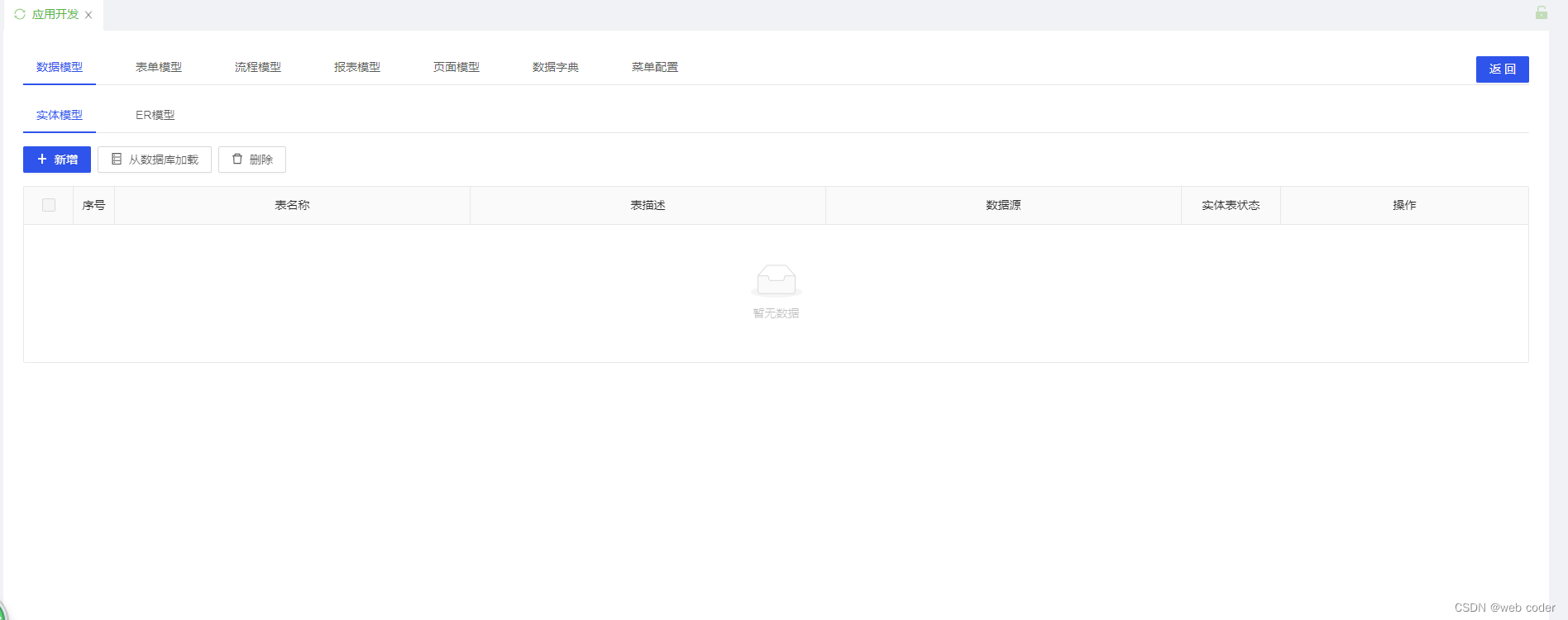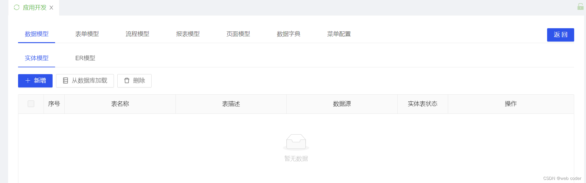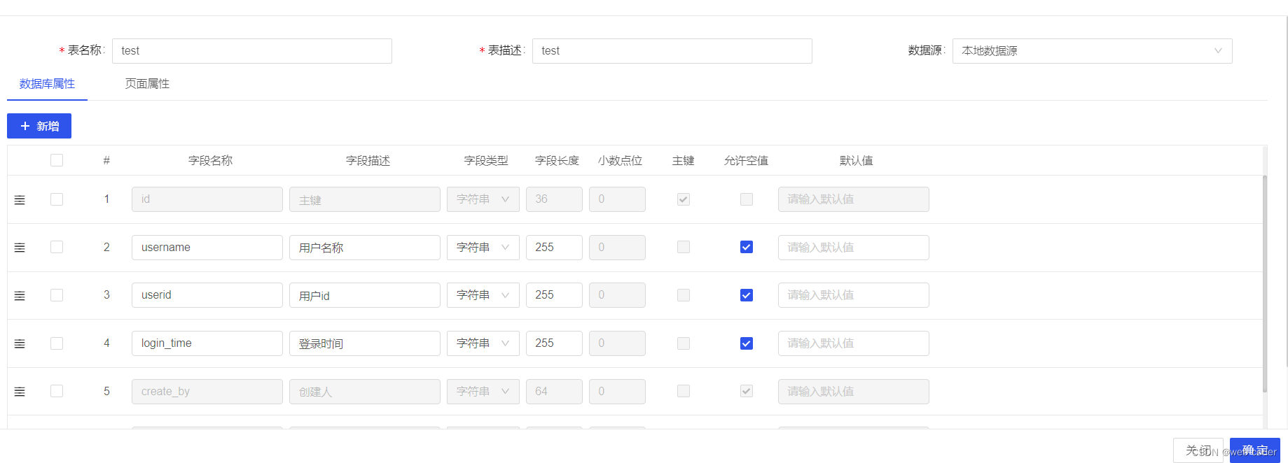 子菜单1:实体模型,点击新增可以配置数据库表字段的名称、长度等信息