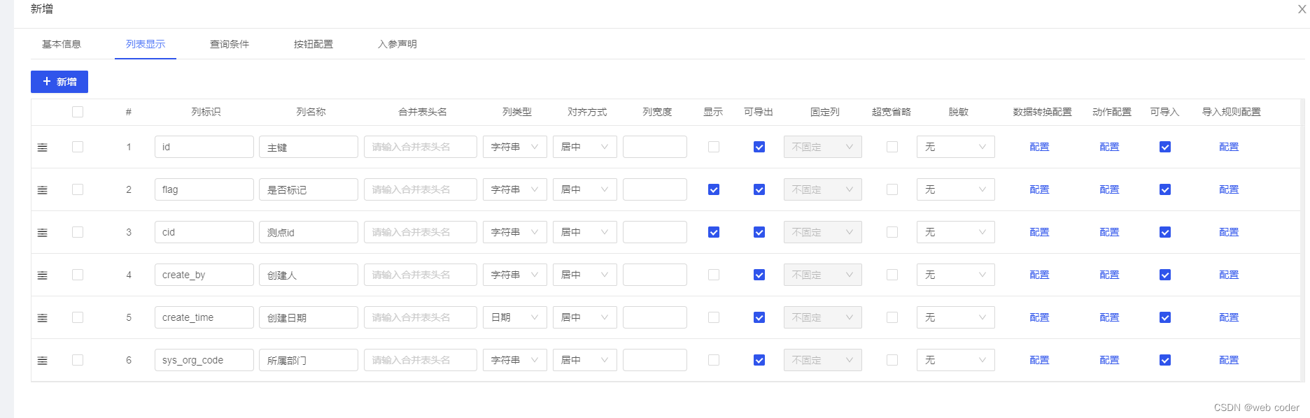点击解析sql后会自动填充列标识、名称等,注意按照自己业务修改,可导入、可导出结合导入导出按钮功能,可设置宽度,超宽省略等样式。