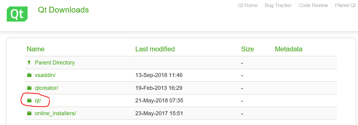 2、进入archive,有四个选项,vsaddin是安装在VS中的插件Qt;qtcreator是Qt开发的IDE,只安装这个是不行的,因为还没有相关的Qt库呢,也就是说他只是一个空壳,一般都用不上;online_Installers顾名思义是在线安装,但这个想想也知道,肯定很慢,而且不能断网,不可控因素太多;我们要选择的是qt/这个选项。