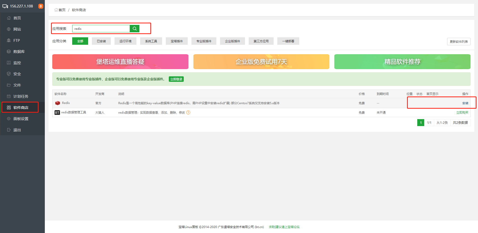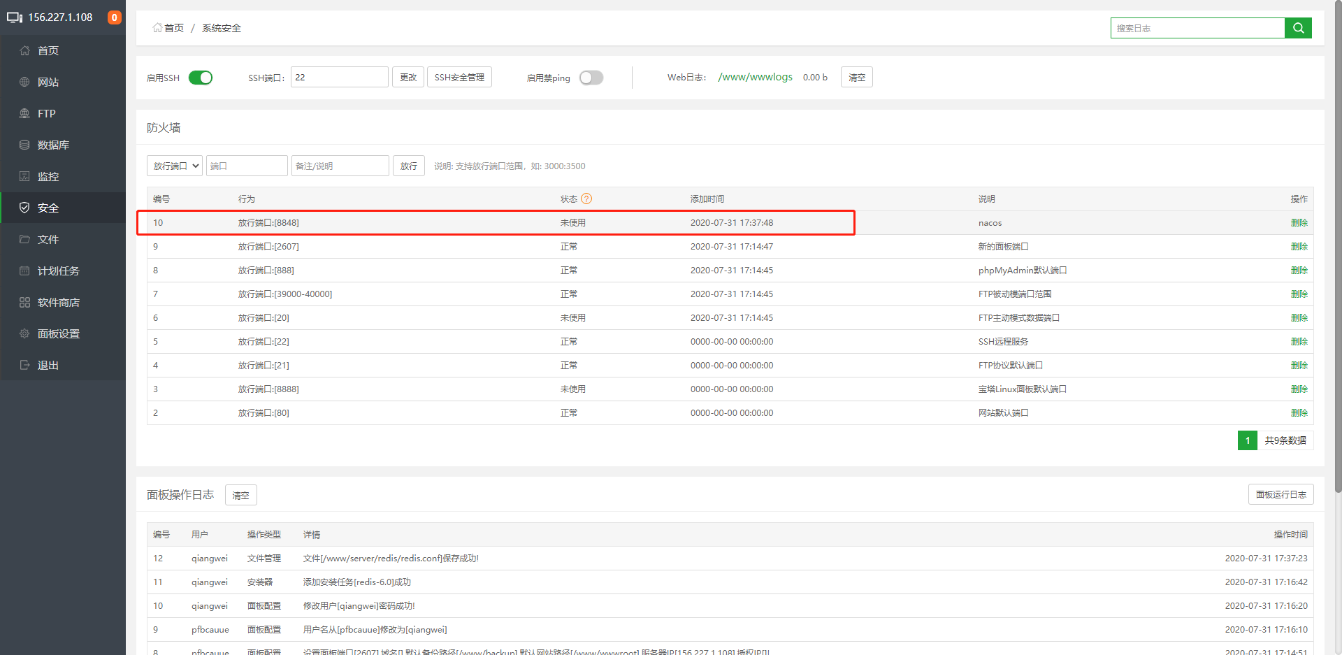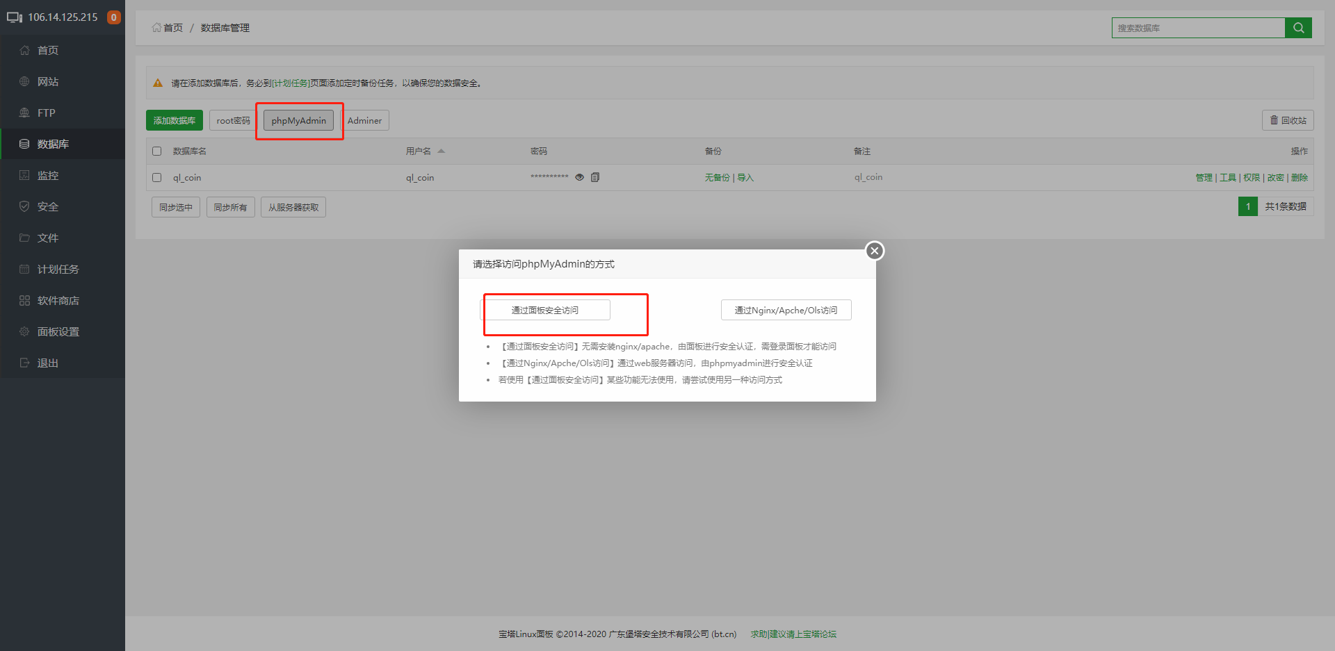 在Linux服务器上部署宝塔管理面板,用来管理Mysql,redis,nginx等