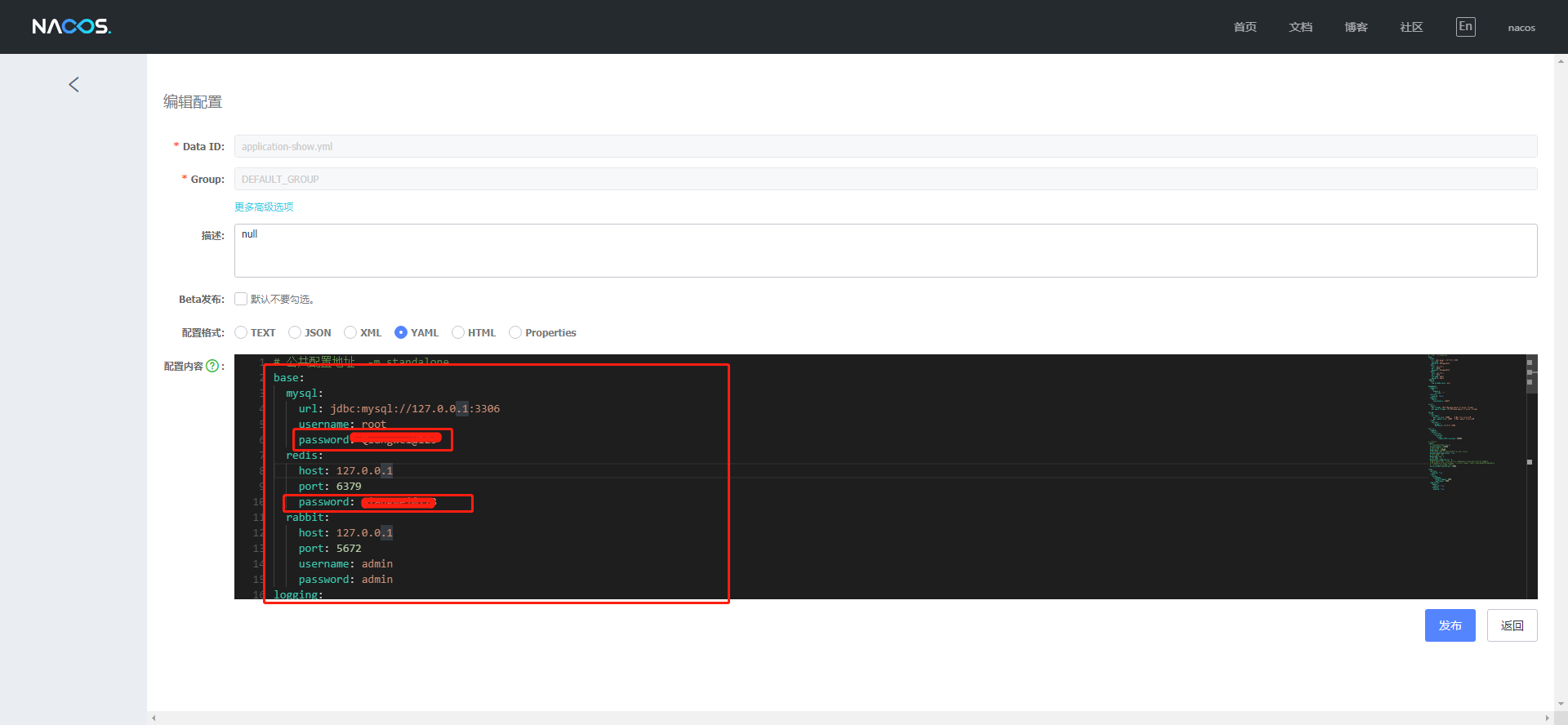 修改redis,mysql,rabbitmq密码 然后点击发布