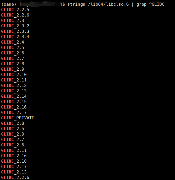 报错日志不难发现是tokenizers在调用GLIBC 2.18的时候找不到。简单了解了一下GLIBC一个Linux的c运行库(glibc_百度百科),再看一下服务器现有的GLIBC版本,确实没有2.18这个版本。