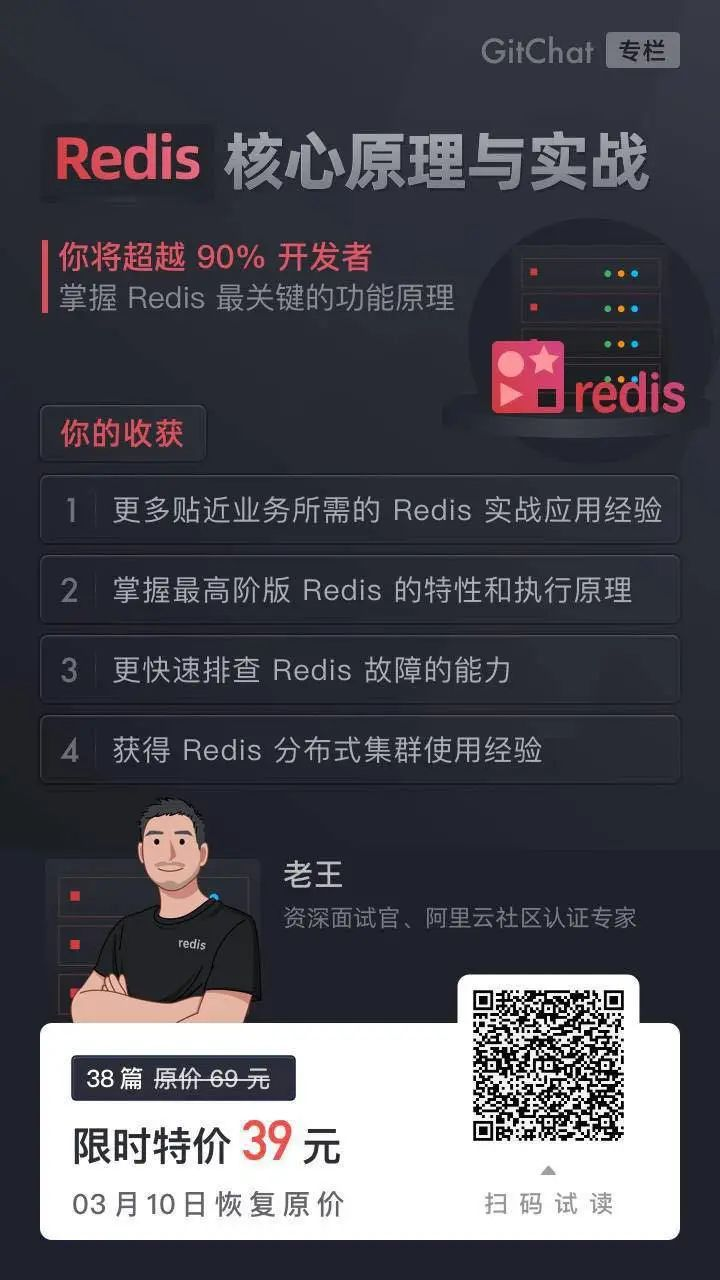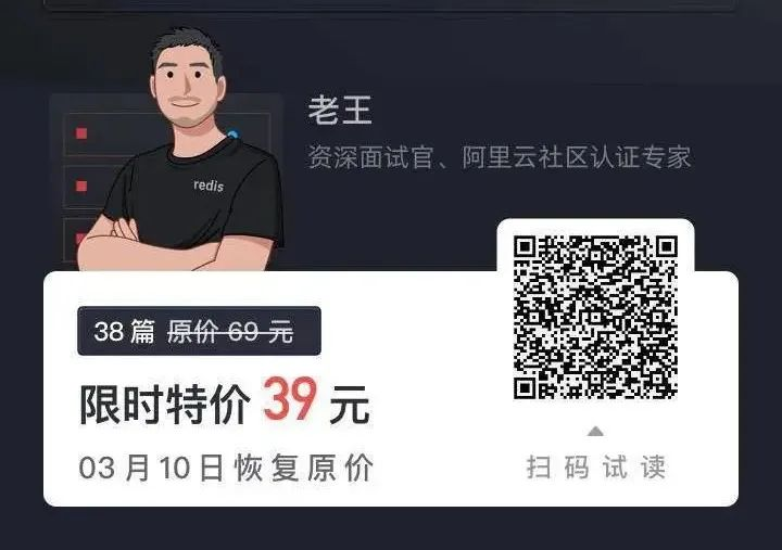 最后,专栏上新正在特价中,一起来快速全面掌握 Redis 的实际业务场景运用吧~