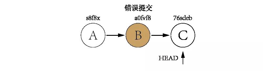 假如现在有三个提交,但很不巧的是,那个错误的提交刚好位于中间。如下图示: