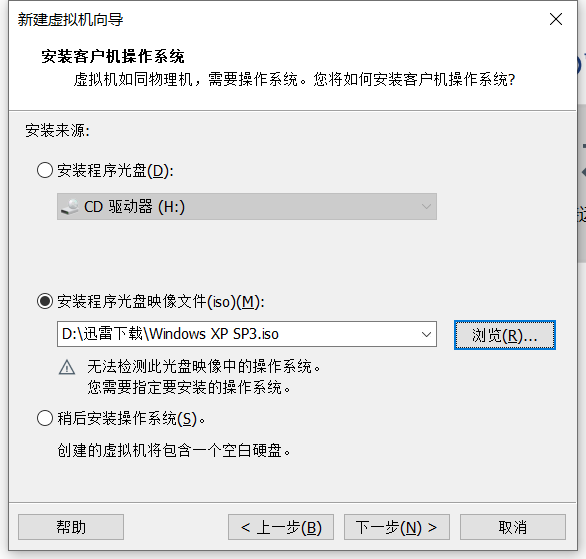 选择安装程序光盘映像文件,点击浏览,找到你刚才下载的镜像文件,点击下一步。