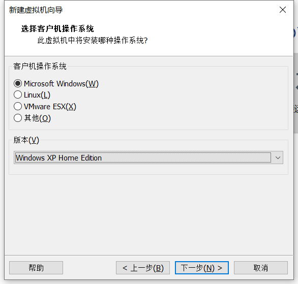 选择虚拟机的操作系统,这里的镜像文件是XP系统,所以我们选择Windows XP,然后下一步。