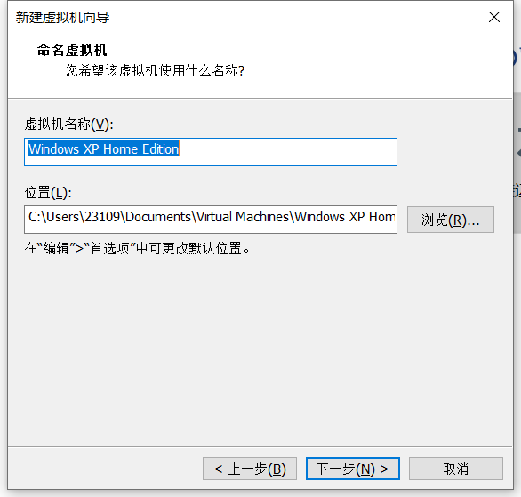 选择虚拟机存储位置和虚拟机名称,点击下一步