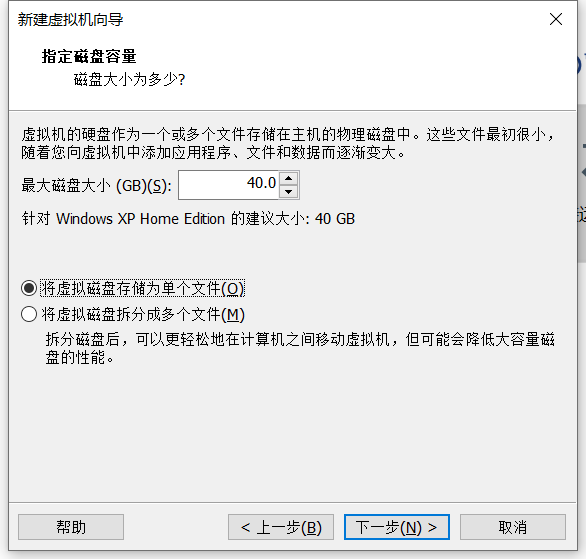 这里推荐选择第一个,将虚拟磁盘存储未单个文件,别问为什么。因为我就是点的这个=。= ,