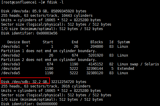 再次查看一下刚刚建好的分区,使用fdisk -l命令: