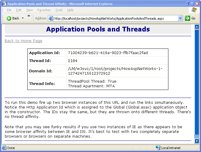 Although IIS 6 application pools are separate EXEs, they are highly optimized for HTTP operations by directly communicating with a kernel mode HTTP.SYS driver. Incoming requests are directly routed to the appropriate application pool. InetInfo acts merely as an Administration and configuration service – most interaction actually occurs directly between HTTP.SYS and the Application Pools, all of which translates into a more stable and higher performance environment over IIS 5. This is especially true for static content and ASP.NET applications.