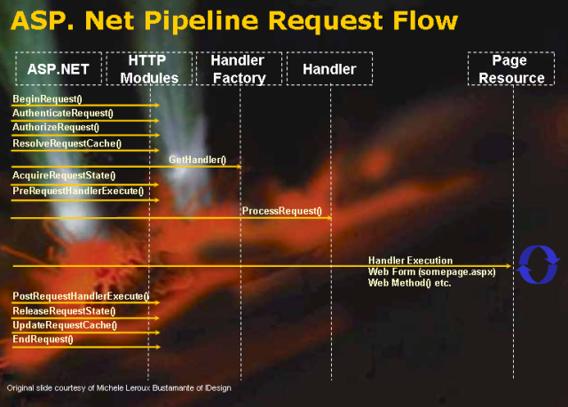 Many thanks to Mike Volodarsky from Microsoft for reviewing this article and providing a few additional hints and Michele Leroux Bustamante for providing the basis for the ASP.NET Pipeline Request Flow slide.