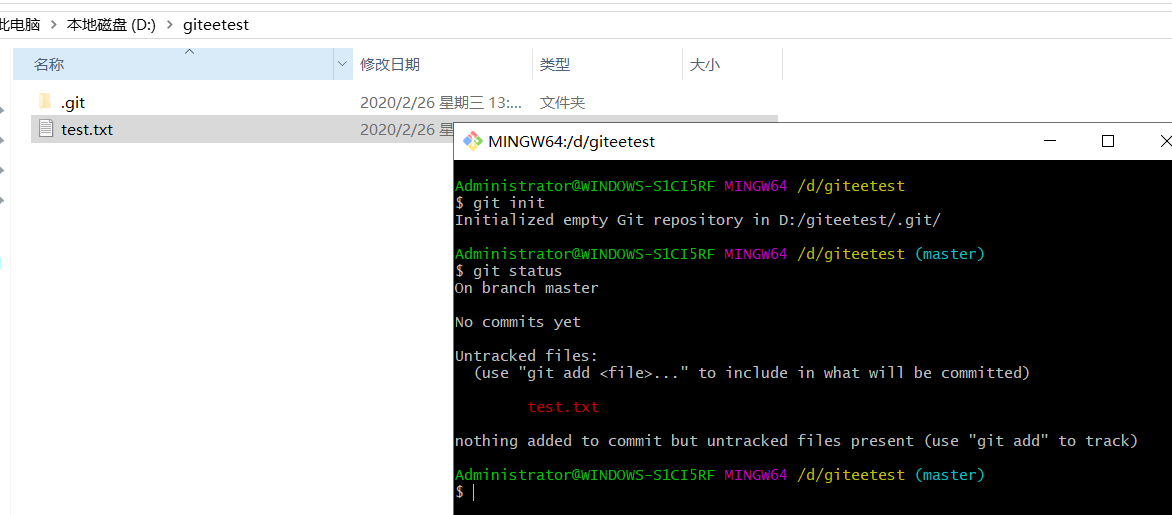 2.本地随便创建一个文件,例如test.txt,自己有项目的忽略我这一点,因为我是空项目,我只是为了测试