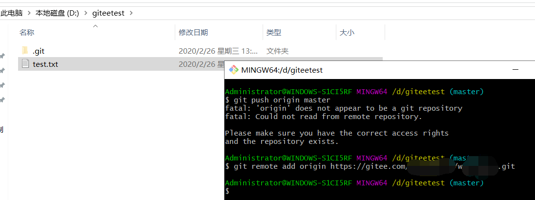 所以我们先绑定码云仓库 git remote add origin https://gitee.com/***/****.git