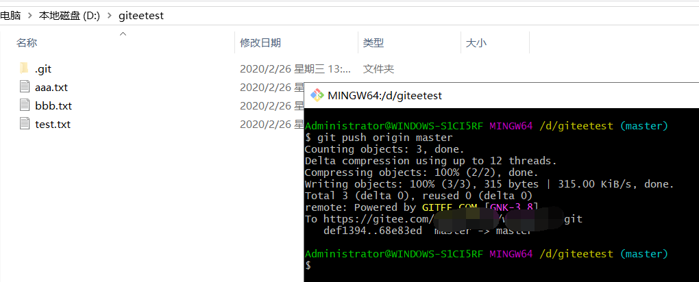 6.git push origin master 提交代码到码云仓库