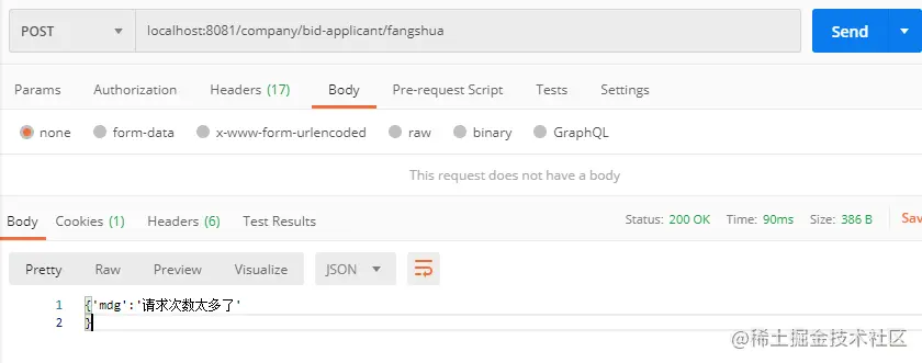 我在第一次请求后的30秒内连续访问超过5次请求,会输出我的报错信息,工作中可以跳转自己的错误页面。