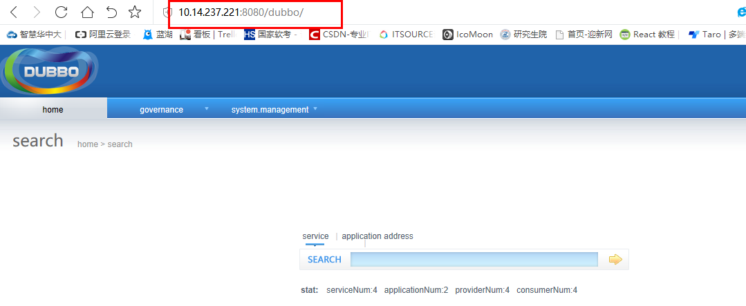 访问:http://106.15.202.182:8080/dubbo/ 可以看到dubbo的注册中心
