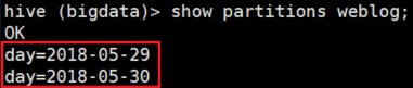 alter table weblog add partition (day='2018-05-30') location '/user/hadoop/weblog/day=2018-05-30';