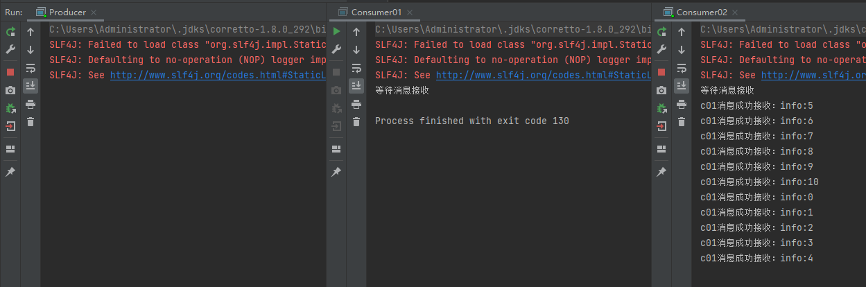 消费与接收具有相似的含义。消费者大多时候是一个等待接收消息的程序。请注意生产者,消费 者和消息中间件很多时候并不在同一机器上。同一个应用程序既可以是生产者又是可以是消费者。