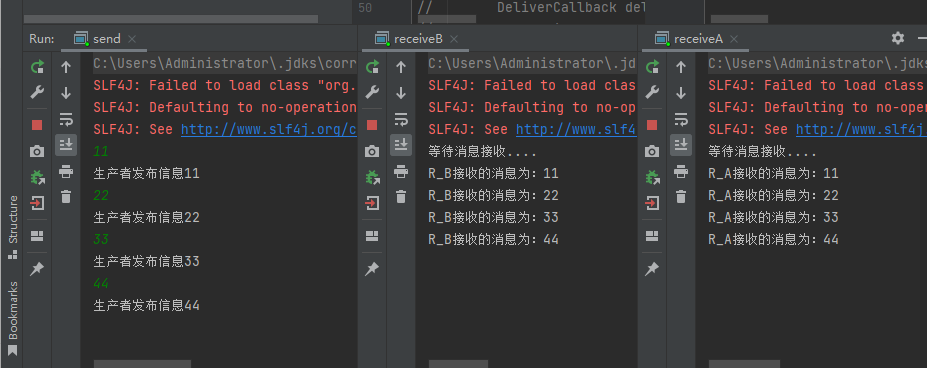 结果只有id1的消息在消费者处进行打印,但是对比id2,id3的消息呗交换机的回调认为是接收到了信息。