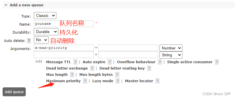//设置队列的最大优先级 最大可以设置到 255 官网推荐 1-10 如果设置太高比较吃内存和 CPU