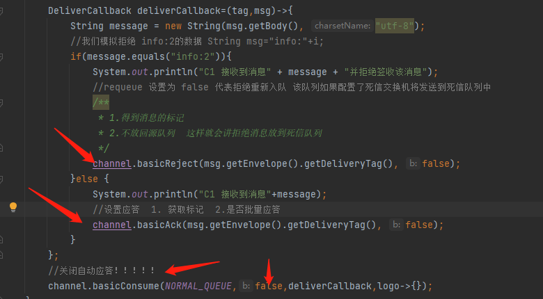 DeliverCallback deliverCallback=(consumerTag,delivert)->{