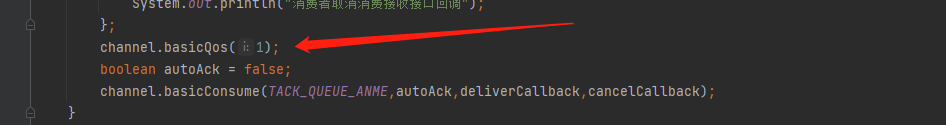 channel.basicConsume(QUEUE_NAME,true,deliverCallback,(consumerTag)->{
