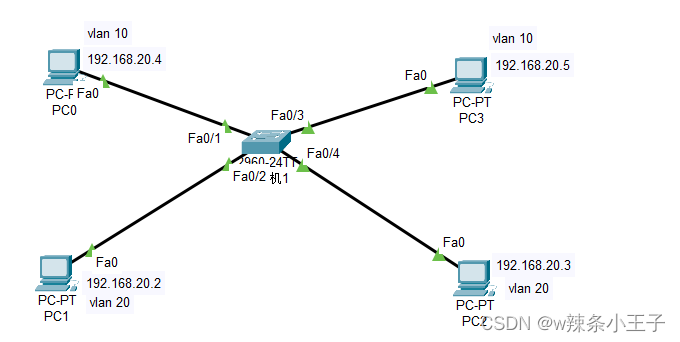 静态VLAN基于端口(接口)划分,需要管理员手动配置,创建VLAN,并将接口加入VLAN