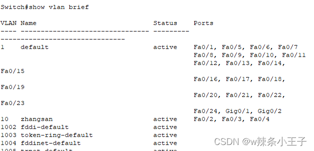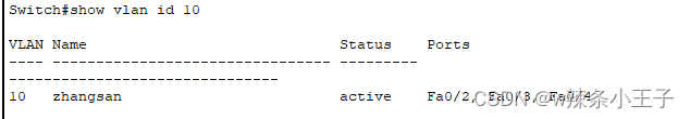 Switch(config-vlan)#name zhangsan /* 可选 给VLAN命名 */