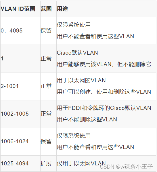 思科设备:总计4096个VLAN 0~4095.不同设备大同小异