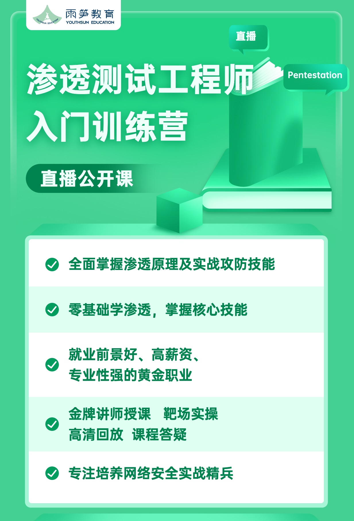 以上就是网络安全工程师主要的工作,希望能够给网络安全初学者以及准备入行的你一些启发。网络安全工程师并不像你所想的那么复杂,虽然涉及的知识面比较广,但当你掌握了整个渗透技术,再去利用工具开展会发现有趣又简单。网络安全行业主要受用最多的是渗透,想要学好渗透,就要从基础学起,一步一个脚印才能够稳扎稳打。雨笋教育线上渗透基础公开课适合零基础和基础薄弱的同学们细化学习,觉得学习找不到方向的同学速速来跟着渗透大佬学技术,带你从零基础入门渗透工程师。