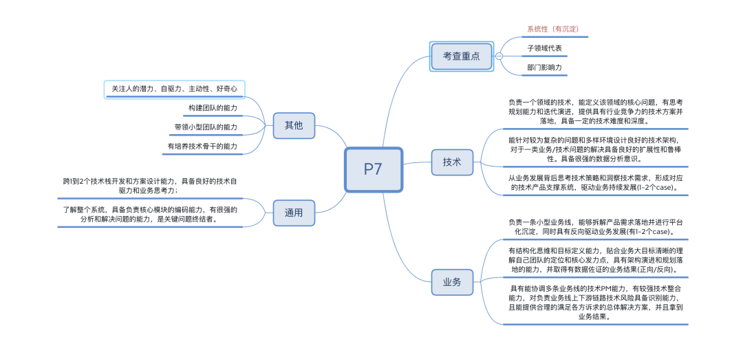 P7 级别到底需要哪些能力呢?如下图思维导图所示:
