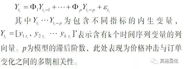 我们使用向量自回归模型来拟合价格冲击与订单变化之间的关系,来研究价格冲击与订单变化之间的多期相关性。我们一般使用实际交易价格来计算价格冲击,而并不是使用报价来计算价格冲击,有如下两个原因。(1)报价的变化是因为市场的订单行为造成的订单簿的价格变动,并不是实际的市场价格变化,例如最优报价的订单全部撤销并不会影响当期的市场交易价格,但是会改变指令簿报价。(2)当订单簿发生有报价变化的动态变化时,使用报价来计算的价格冲击无法涵盖市场中的市场参与者者根据订单簿的状态进行的瞬时交易造成的短期价格冲击。