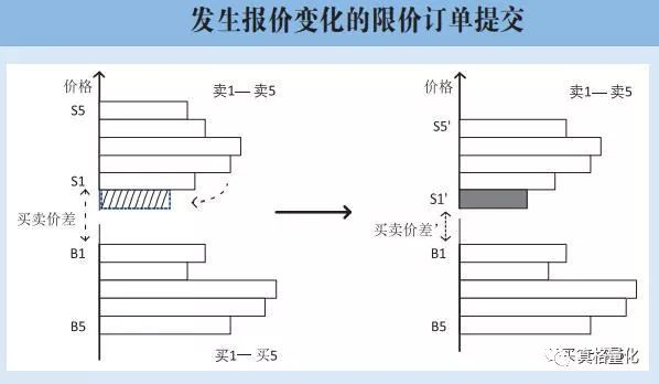假设当一个投资者希望以较高的价格出售期货合约时,那么该投资者会提交一个限价卖单,反之,他会提交一个限价买单。而对于那些希望立刻成交的投资者来说,他们会提交市价买单和市价卖单,市价买单和限价卖单匹配,市价卖单和限价买单匹配,当市价买单(卖单)数量足够大时,期货的盘口买卖价差会拉大,买卖报价中间价就会上升(下降)。