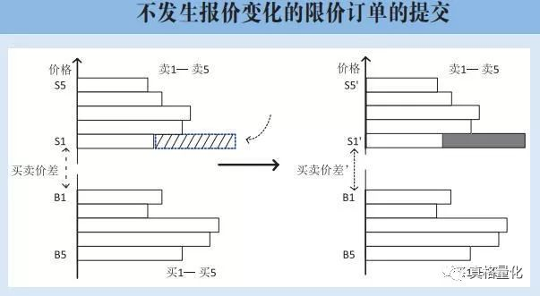 根据限价指令簿的动态演化过程,本文将订单簿的变化分为报价有变化的动态演化和报价无变化的动态演化。对于任何一种动态演化,都有可能存在三种订单行为,分别是: