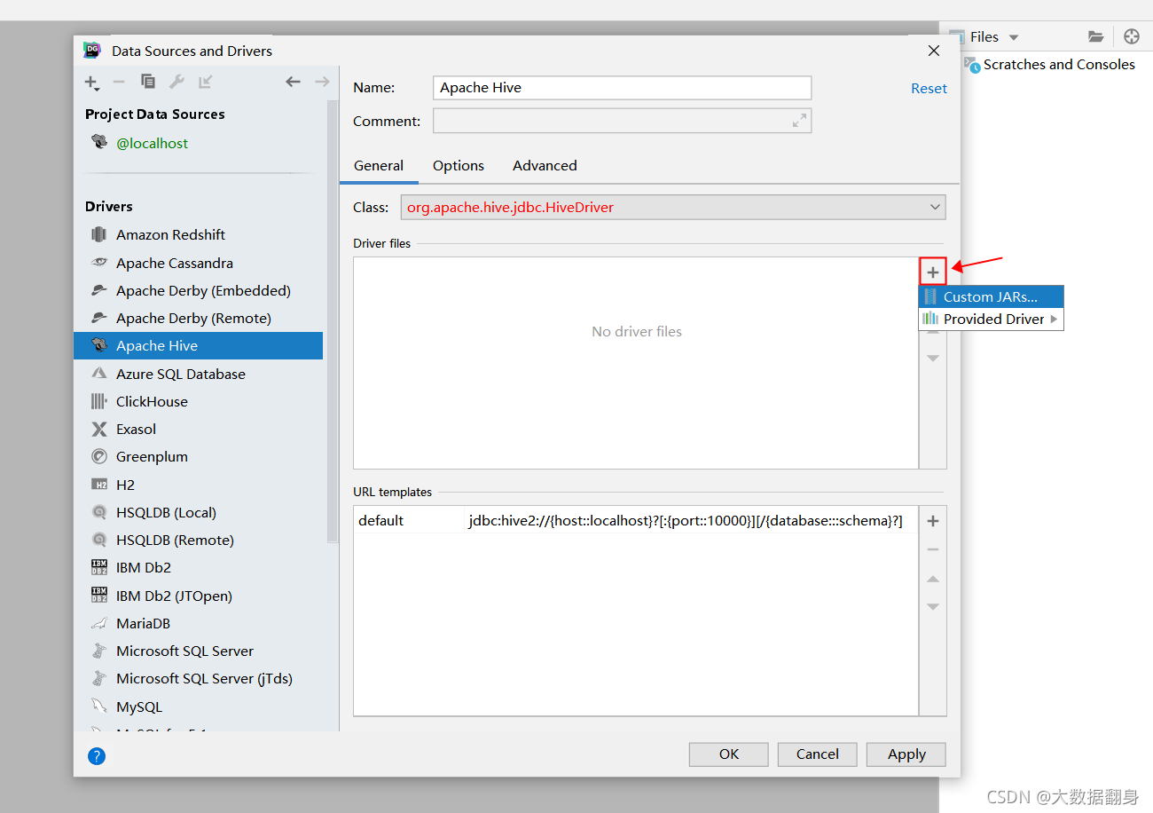点击Driver files右侧的 + ,选择的自定义jar(Custom JARs)