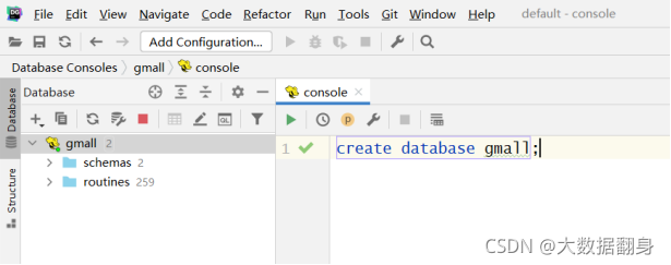 创建数据库gmall,并观察是否创建成功。