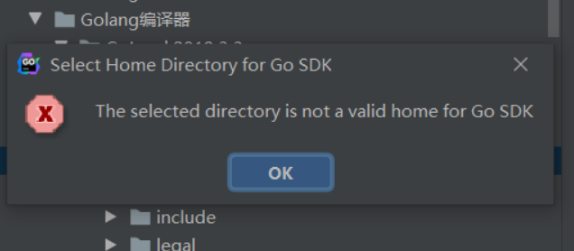 "The selected directory is not a valid home for Go Sdk"