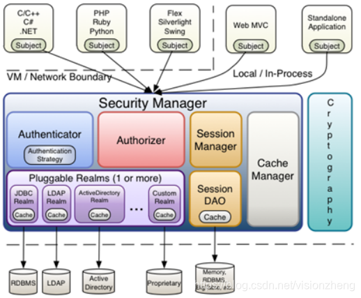 1.应用代码通过Subject来进行认证和授权,而Subject又委托给SecurityManager;