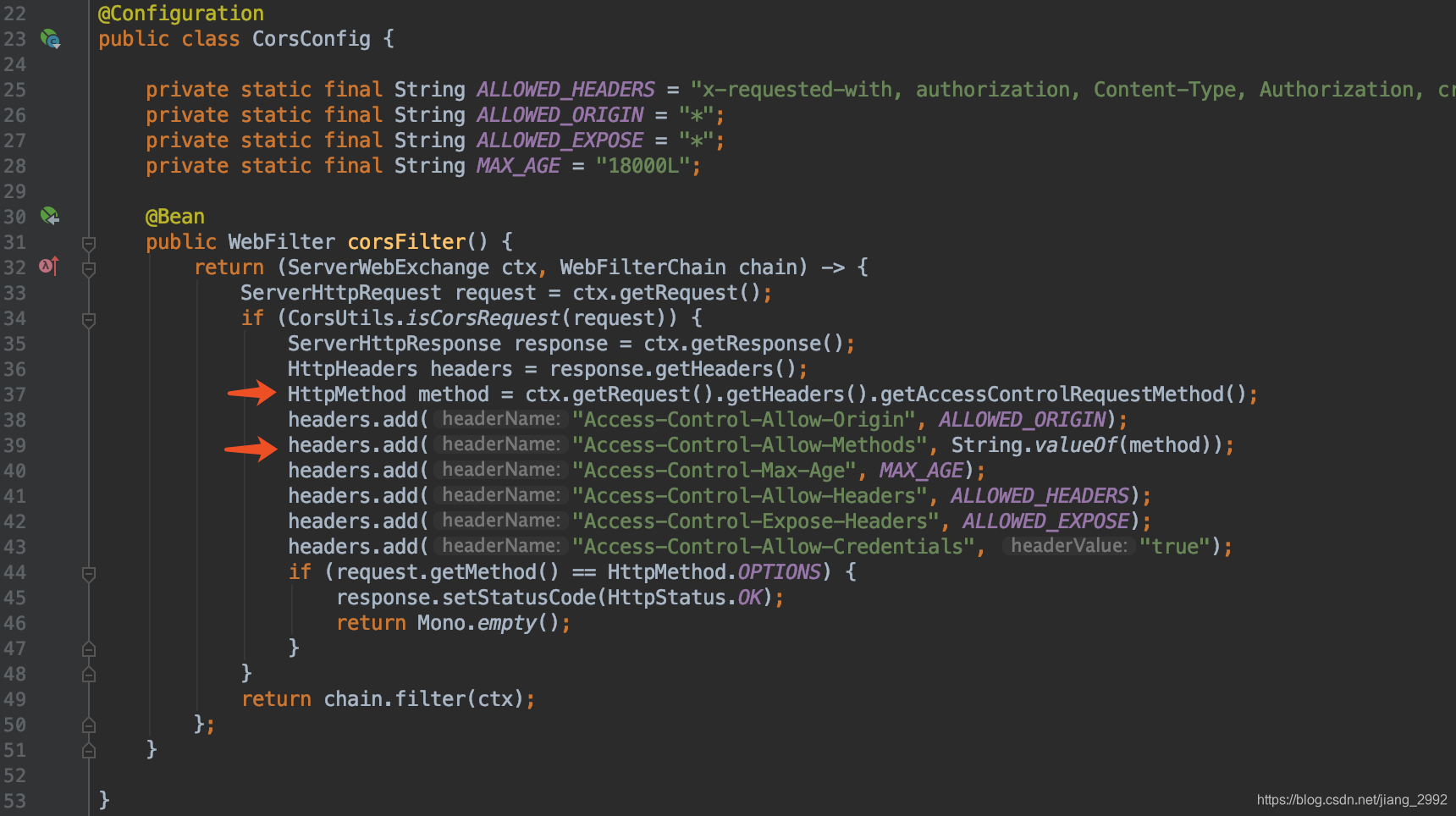 (我这里的代码是 Java Spring,将 OPTIONS 请求的 Access-Control-Request-Method 请求头的值直接放到响应头 Access-Control-Allow-Methods 返回,效果与通配符 * 是一样的,其他语言和框架同理)