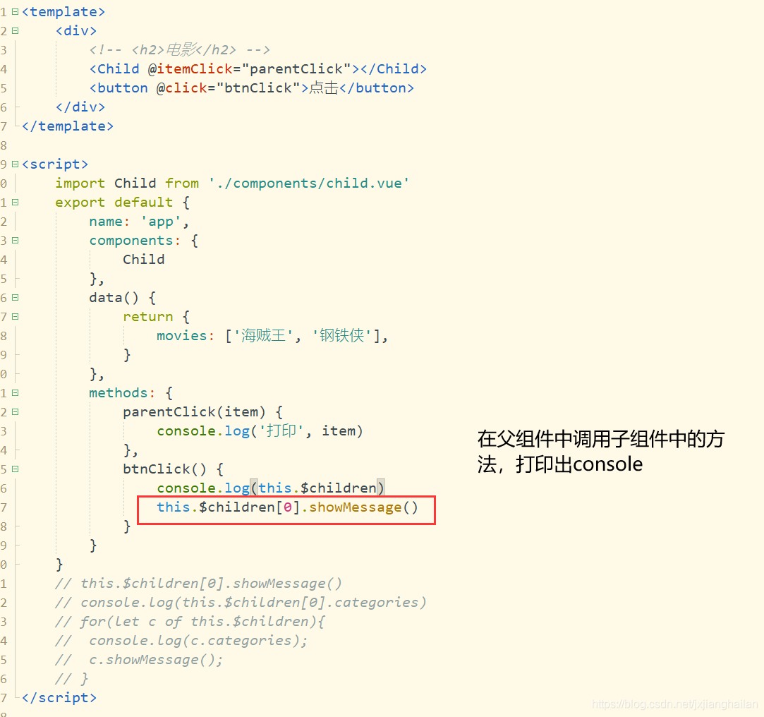 父组件访问子组件:使用$children或$refs