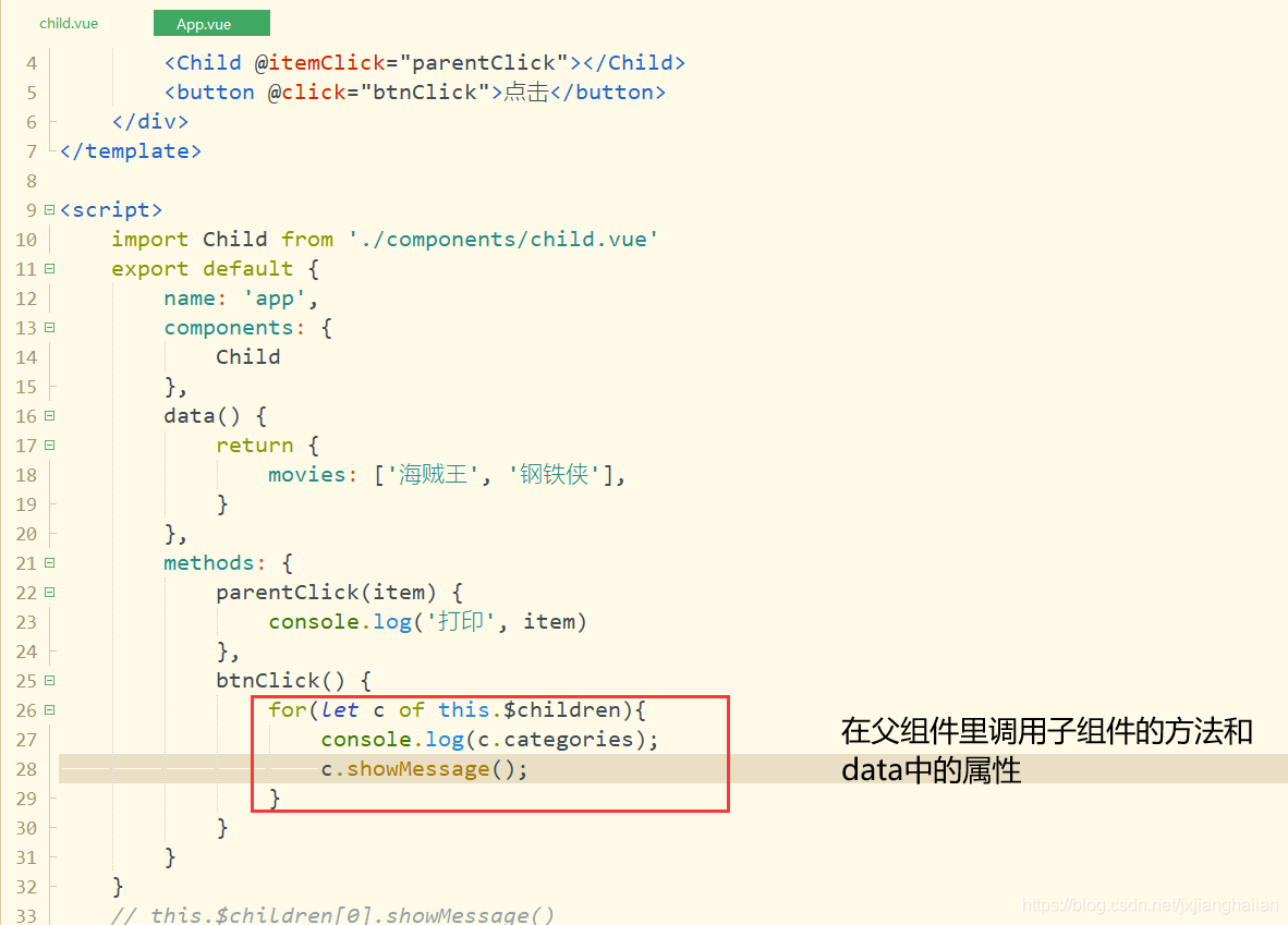使用$children获取子组件数据: