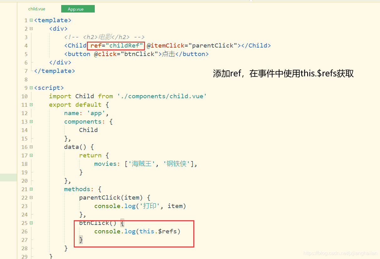 使用$refs获取子组件数据