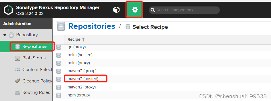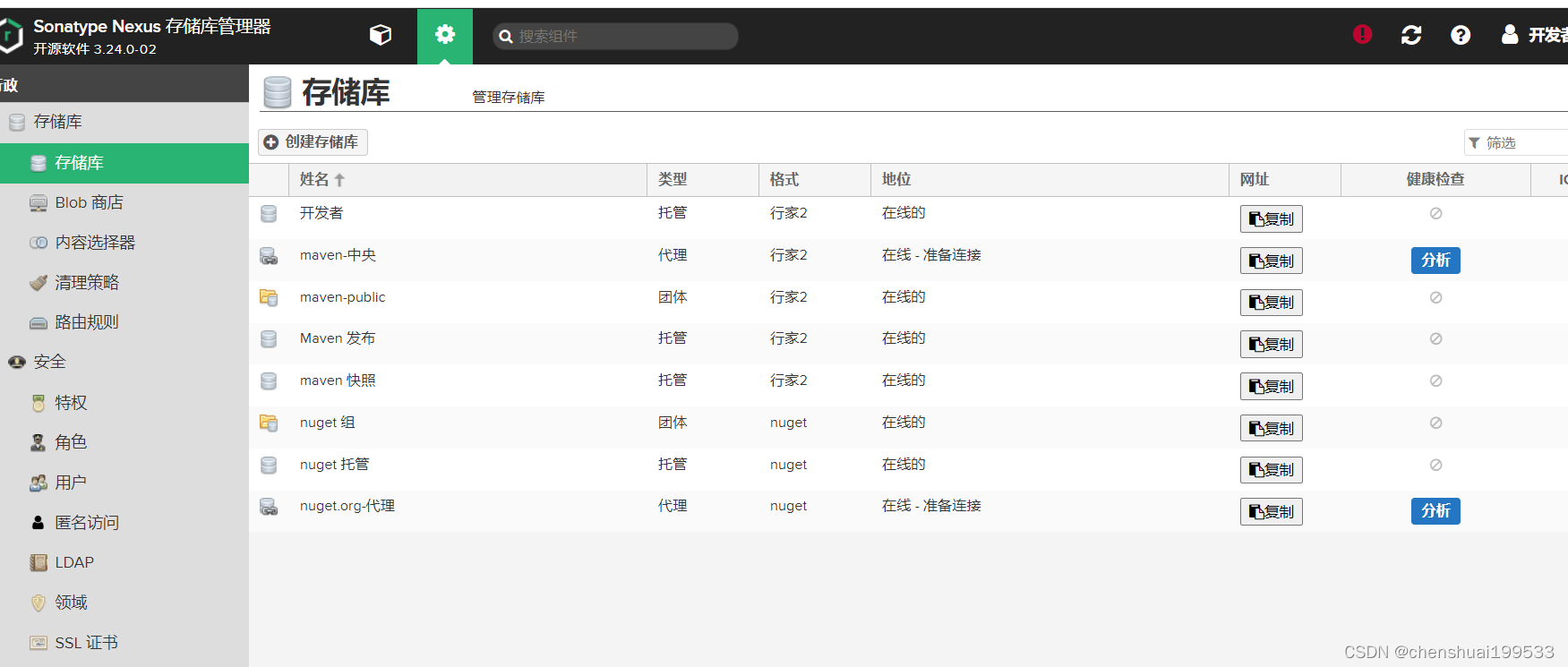 按图中标识顺序点击,就可以看到有这些仓库,现在分别介绍它们,分为三种类型: