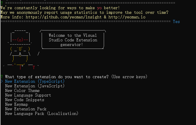 yo code根据提示,选择自己安装项目的配置